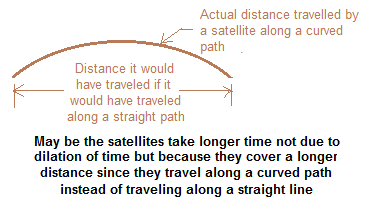 But howsoever minimal effect it may have — we can’t deny that since the satellites do not travel along a straight line, they travel along a curved path as shown in the following diagram — they cover a longer distance than the distance, they would have covered had they been traveling along a straight line.