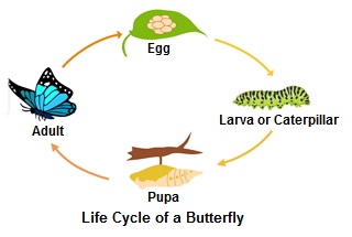 What is true in the case of the eggs of birds and aquatic creatures, has to be true in the case of the insects such as butterflies (the life cycle of which has been shown in the following diagram) as well as in the case of the mosquitoes.