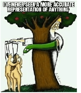 Though to think that some snake may have frightened Eve to eat some apple so that she could cling to Adam is preposterous, I will explain why it is wrong to doubt whether God exists or not even though it is true that Eve should have not clung to Adam after eating that apple.